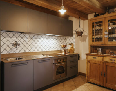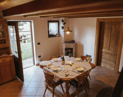 CARATTERISTICHE: Sorto sulle rovine di un’antica malga, questo rustico in pietra e legno offre interni tipici della tradizione alpina, accoglienti e confortevoli. La struttura, completamente indipendente, è immersa tra i prati e i boschi del Lagorai. Un ambiente ideale per chi desidera trascorrere una vacanza all’insegna di una natura incontaminata e di una rara tranquillità. Al primo piano: cucina attrezzata con lavastoviglie e stufa a legna, soggiorno con televisore satellitare e caminetto, bagno con lavatrice e ampia vasca ad angolo, ripostiglio. Al piano sottotetto: due ampie camere da letto interamente in legno dotate di letti matrimoniali e singoli, cabina armadio, e disbrigo. Il tutto su una superficie complessiva di circa 100 mq. All’esterno disponibile un ampio spazio verde, posti macchina, tavolo con panche, barbecue e giochi per bambini.