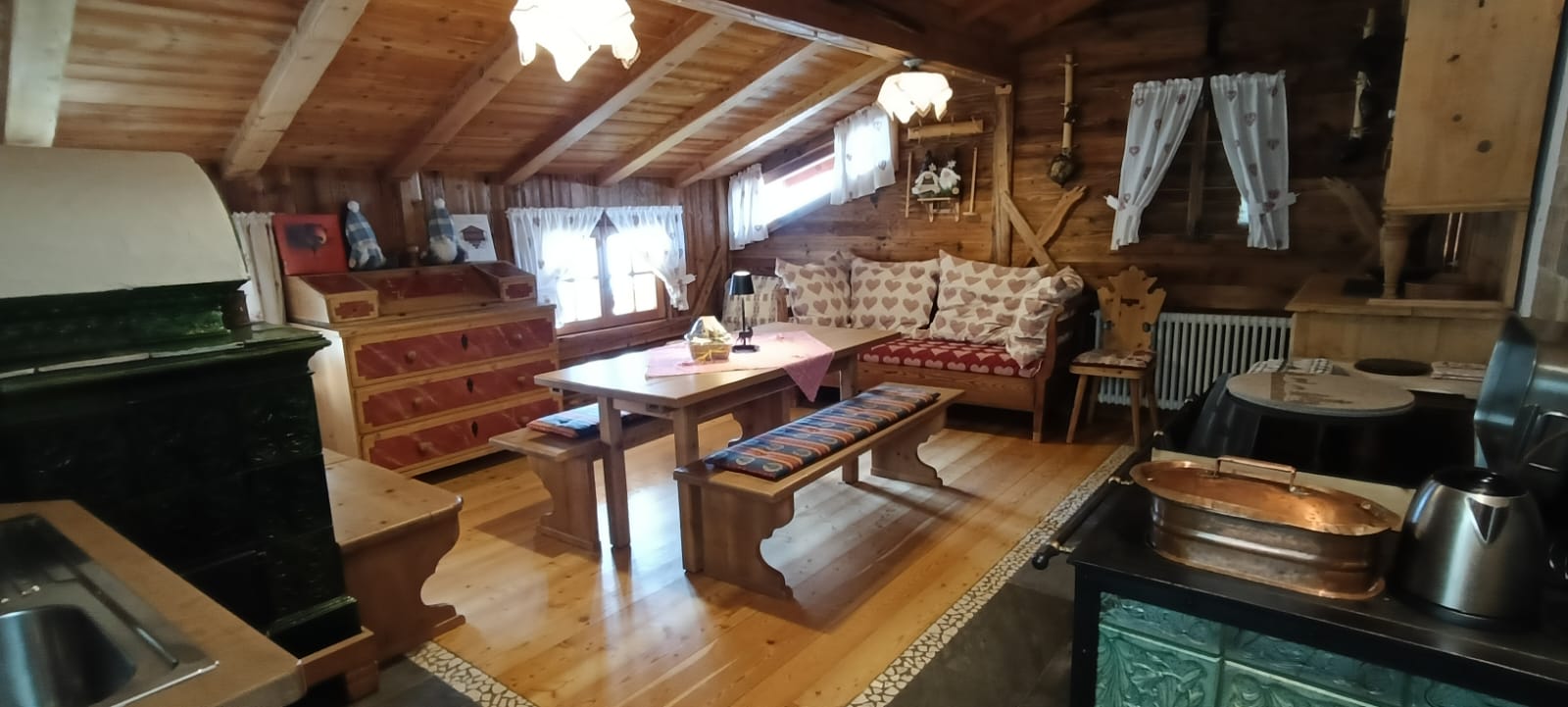 CARATTERISTICHE: Il tempo lassù a quota 1490 m s.l.m si è fermato e gli ospiti respirano la tranquillità e i profumi unici di questa realtà contadina che ha lasciato indelebili segni di un passato fatto di cose semplici. Le giornate sono scandite dal sorgere e calar del sole. La posizione ideale del maso Stablo, molto soleggiata e panoramica, riserva agli ospiti un paesaggio da favola. L’edificio che sovrasta la piccola valletta di Peio rinomata per le sue acque minerali, nella quale trova ampio spazio il Parco Nazionale dello Stelvio dove ogni giorno pascolano cervi e caprioli immersi in una natura incontaminata, il tutto rende la vostra vacanza unica e indimenticabile. Gli interni sono costituiti dal soggiorno con una stufa a legna originale per preparare pietanze dai sapori antichi, dalla stufa in maiolica che riscalda tutto l’ambiente e distribuisce serenità, una camera con letto a baldacchino dove le emozioni sono coccole dettate da un silenzio che esaltano le melodie della vita rurale. I servizi igienici di ultima generazione sono ottimamente inseriti nel contesto tradizionale, acqua di sorgente e tanta aria pulitissima, lontani dalle auto e dai rumori quotidiani, un ampio prato con panche per le giornate all’aria aperta.